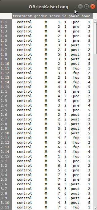 O'Brien and Kaiser's Repeated-Measures Data in "Long" Format