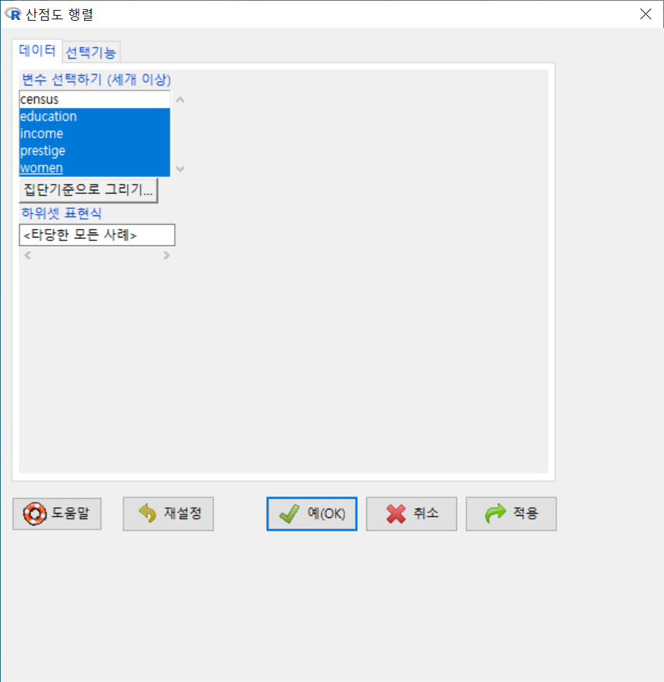 그래프 > 산점도 행렬...