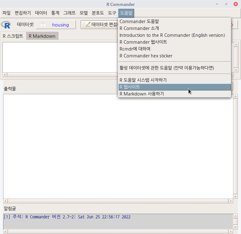 ?Commander # Rcmdr 패키지의 Commander 도움말 보기도움말 > R 도움말 시스템 시작하기