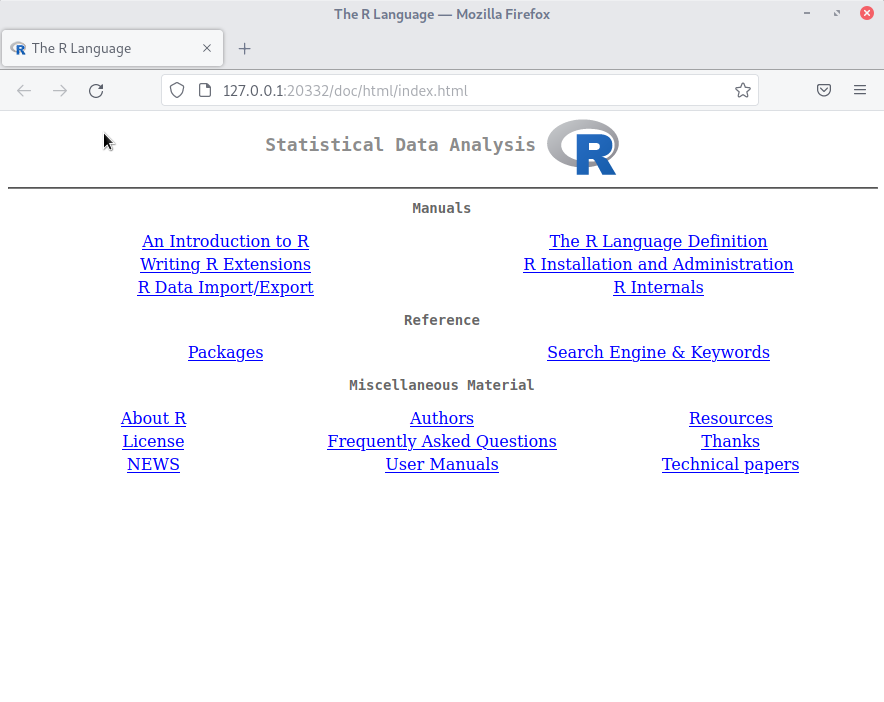 R을 내려받아 설치하면, R을 공부하고 사용하는데 필요한 많은 문서와 도움말이 함께 설치된다. R Commander에서 '도움말 > R 도움말 시스템 시작하기' 메뉴 기능을 선택하면, 아래와 같이 웹 브라우저 창이 등장하고, 내장된 많은 문서와 도움말 기능을 이용할 수 있게 된다.