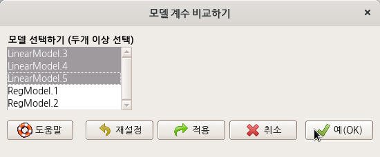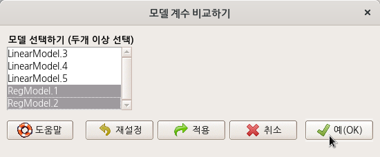 두개 이상의 모델을 선택하고 그 안에 포함된 계수(coefficients)를 비교하는 기능이다.