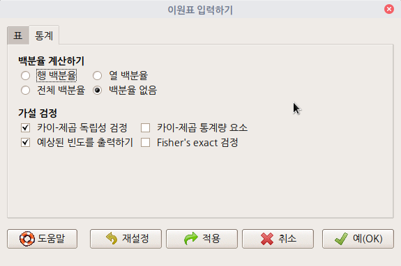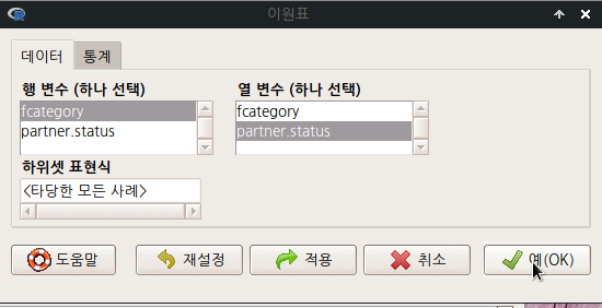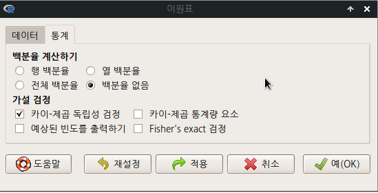 통계 > 분할표 > 다원표...