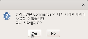 아래 화면은 플러그인이 적재되기 이전에 새로운 환경이 등장하는 조건을 환기시키는 질문을 담고 있다. R Commander가 사라졌다가 다시 등장하게된다.